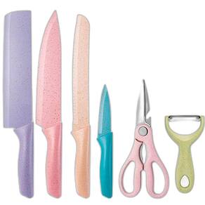 Jogo Facas Inox Profissional Colorido 6 Pçs Moderno Tesoura