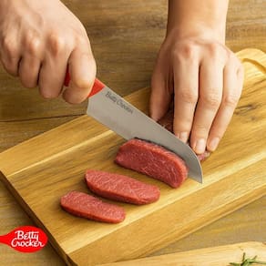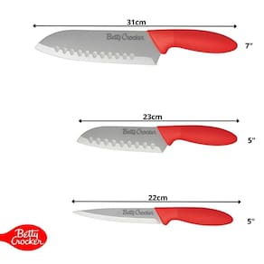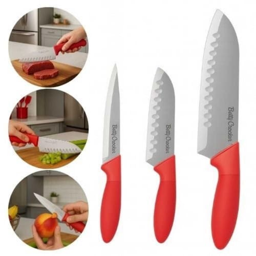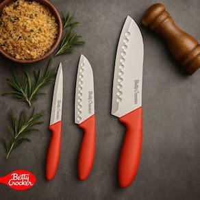 Descubra a excelência no preparo de suas receitas com o Jogo de Facas de Cozinha 3 Peças da Betty Crocker, perfeito para chefs e amantes da culinária que valorizam precisão e qualidade.