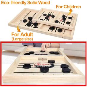 . Large Size Funny &. Exciting Game:Inicie o jogo e coloque cinco discos em cada lado do tabuleiro. Deslize ambas as extremidades da banda elástica para as ranhuras laterais para que elas se encaixem no lugar. Quem limpar o tabuleiro primeiro, ganha. Madeira maciça de alta qualidade: estrutura de madeira maciça e peças de jogo de madeira. Mais durável e ecologicamente correto do que outros materiais baratos, jogo bonito e duradouro. Melhore a capacidade de resposta:Este é um jogo de ação rápido, melhora a coordenação mão-olho do seu filho, fortalece a habilidade motora fina que amplia o foco das crianças, atrai crianças e fica longe da eletrônica. Diversão em Família:Leve e compacto o suficiente para carregar. Você pode estar pronto para jogar na mesa ou no chão, com seus amigos e família, é um jogo de família engraçado. Melhor Presente :Este é um jogo de hóquei no gelo de alta qualidade, um jogo rápido e inteligente, um belo presente para a família e amigos, e um jogo divertido e interativo