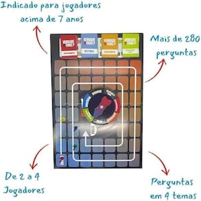 Contém: 1 Tabuleiro, 4 Pinos, 1 Roleta, 64 Cartas e 1 Roleta.