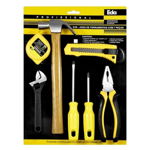 Jogo Ferramentas 7 Peças Chaves Alicate Martelo E Trena Eda