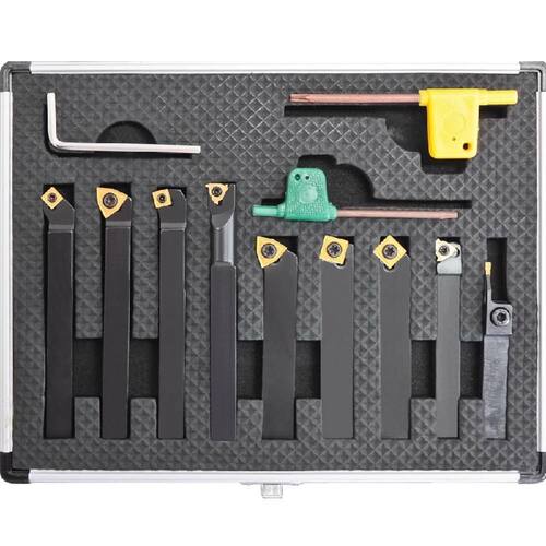 Pastilhas revestidas TIN. Acompanha Chave Allen e Torx. Aplicação: usinagem de aço em geral. Apresentação: estojo de alumínio. Modelo: Jogo Com 9 Peças. Bitola da Haste mm : 8 x 8. Modelo da Pastilha: SCMT060204 - WCMT050308 - 11 IR A60 - 11 ER A60 - MGMN200. Chave: Torx 8 - Torx 10 - Allen 3.