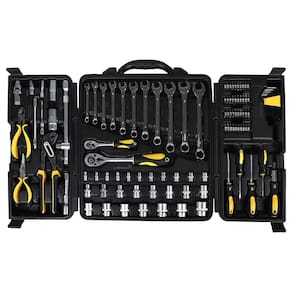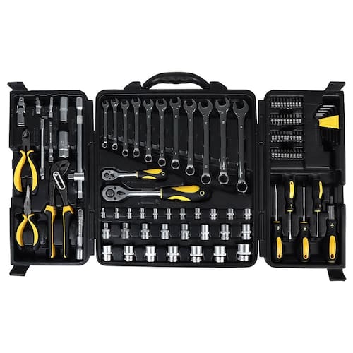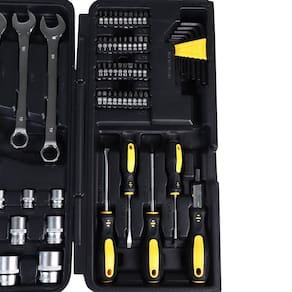 Itens inclusus: 01 Porta-chaves allen/hexagonais 04 Porta-bits 01 Alicate corte diagonal: 6'' 01 Alicate bico meia cana: 6'' 01 Alicate bomba d'água: 10'' 02 Chaves de fenda: 5mm x 75mm (3/16'' x 3'') 6,3mm x 100mm (1/4'' x 4'') 02 Chaves philips: 5mm x 75mm (nº1 - 3/16'' x 3'') 6,3mm x 100mm (nº2 - 1/4'' x 4'') 08 Chaves allen/hexagonais: 1,5mm-2mm-2,5mm-3mm-4mm-5mm-5,5mm-6mm 11 Chaves combinada: 8mm-9mm-10mm-11mm-12mm-13mm-14mm-15mm-17mm-18mm-19mm 15 Soquetes sextavados encaixe 1/2'': 10mm-11mm-12mm-13mm-14mm-15mm-17mm-18mm-19mm-20mm-21mm-22mm-23mm-24mm-27mm 01 Catraca encaixe 1/2'' 01 Extensão 5'' encaixe 1/2'' 01 Junta universal encaixe 1/2'' 01 Cabo T encaixe 1/2'' 02 Soquetes para vela de ignição: 16-21mm 11 Soquetes sextavados em encaixe 1/4'': 4mm-5mm-6mm-7mm-8mm-9mm-10mm-11mm-12mm-13mm-14mm 01 Catraca encaixe 1/4'' 01 Extensão 2'' encaixe 1/4'' 01 Extensão 4'' encaixe 1/4'' 01 Extensão flexivel 6'' encaixe 1/4'' 01 Junta universal encaixe 1/4'' 01 Cabo adaptador para bits com catraca encaixe 1/4'' 07 Fenda: 3,5mm(2pçs)-4mm(2pçs)-5,5mm-6,5mm-8mm 08 Philips: nº0-nº1-nº2-nº3(2pçs de cada) 06 Allen: 2mm-3mm-4mm-5mm-6mm-7mm 03 Quadrados: S1-S2-S3 07 Hexalobular: T10-T15-T20-T25-T27-T30-T40 03 Pozidrive: PZ1-PZ2-PZ3 04 Tres pontas: 1-2-3-4 02 Adaptadores 01 Maleta plastica Marca: Não Informado