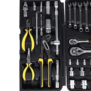 O Jogo de Ferramentas Profissional 110 Peças Cromo Vanadium 49103 da Tradestar é um conjunto completo para uso diário em oficinas e manutenção, ideal para quem precisa de um kit variado com chaves de boca, catracas, soquetes e bits. Fabricado em aço cromo-vanádio, o conjunto oferece boa resistência para tarefas regulares. Apresenta-se organizado em uma maleta prática para transportar e manter as ferramentas em ordem, sem ocupar muito espaço.