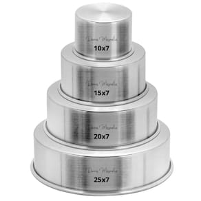 Itens inclusos 1 uma assadeira redonda fundo fixo - 10 x 7 cm pequena 1 uma assadeira redonda fundo fixo - 15 x 7 cm pequena 1 uma assadeira redonda fundo fixo - 20 x 7 cm pequena 1 uma assadeira redonda fundo fixo - 25 x 7 cm Marca: donna magnólia Material: alumínio Espessura de 0,7 a 0,9 mm depende o tamanho