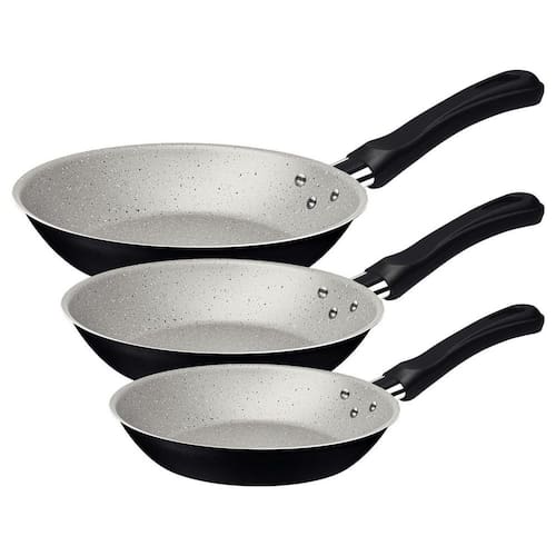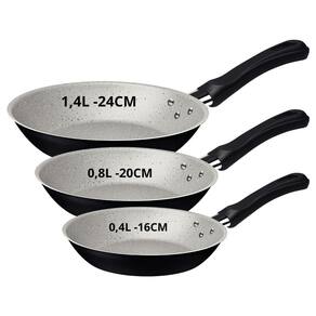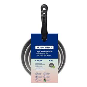 Descubra o prazer de cozinhar e criar receitas incríveis, com o jogo de frigideiras Tramontina Caribe em alumínio com revestimento interno e externo antiaderente Starflon Max preto 03 peças. Produzidas em alumínio com revestimento antiaderente Starflon Max, suas frigideiras cozinham os alimentos de maneira rápida e uniforme, sem que eles grudem em sua superficie. Seus cabos são em baquelite antitérmico e proporcionam um manuseio muito confortável e seguro, pois reduzem a propagaçaõ de calor. Além de todos estes atributos incríveis, as frigideiras são muito fáceis de limpar e podem ser lavadas na máquina de lavar louças, otimizando seu dia a dia na cozinha. Sem dúvida, a escolha perfeita para levar alta qualidade e beleza para sua cozinha, garantindo um preparo das suas refeições muito mais prático Corpo de alumínio com espessura que proporciona cozimento rápido e uniforme. Revestimento interno e externo de antiaderente Starflon Max que não gruda, é fácil de limpar, mais durável e não é prejudicial à saúde, pois é livre de PFOA. Cabo de baquelite antitérmico que oferece segurança durante o manuseio. Pode ir à máquina de lavar louças facilitando seu dia a dia. Pode ser utilizada nos fogões: gás, elétrico e vitrocerâmico - resistência elétrica. Jogo de Figideira Alumínio 3 Peças Caribe Tramontina Starfon MAX Conteúdo: 1 Frigideira 16cm - 0,4L 1 Frigideira 20cm - 0,8L 1 Frigideria 24cm - 1,4L