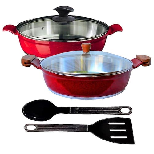 01 Frigideira Antiaderente Usinado Javali Vermelho Alça de Alumínio 30cm .