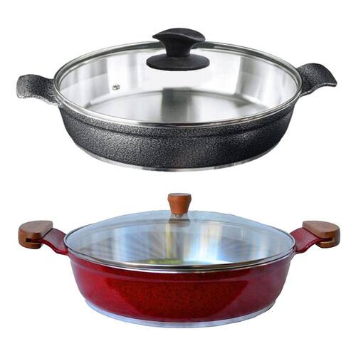 01 Frigideira Antiaderente Usinado Javali Vermelho Alça de Madeira 30cm.
