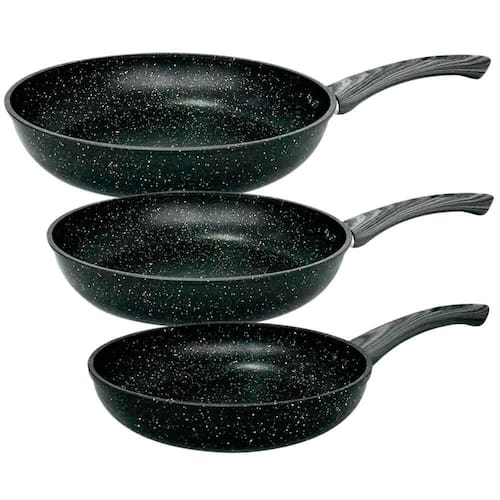 Características: Marca: Casambiente Referência: AL133/AL134/AL135 Modelo: Zebra Material da Frigideira: Alumínio Material do Cabo: Baquelite Soft-Touch Revestimento Interno: Cerâmico Espessura: 2,5mm Cor: Preto Quantidade: 3 peças