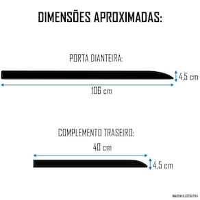 Descrição:O friso lateral é produzido em polipropileno pp de alta qualidade na cor preto, e segue os padrões mais exigentes de qualidade. Sua pintura é resistente e não desbota ou sai com o tempo. O friso lateral deixará seu carro muito mais bonito e atraente. Protege as portas contra pequenos acidentes e arranhões. Kit composto por 4 peças.Friso com ótima qualidade de acabamento e pintura.Produto universal para carros 2 portas.Medidas aproximadas dos frisos:- largura: 5 cm- porta dianteira: 106 cm- porta traseira: 40 cm1 ano de garantiaAlém de deixar seu carro com aspecto mais esportivo e moderno, o friso protege a lateral do seu veículo contra pequenos arranhões e amassosDisponível somente na cor:- preto.Possíveis carros compatíveis:- gol- palio- fox- strada- corsa- parati- uno- celta- ka- clio- astra- fiesta- peugeot 206- peugeot 207