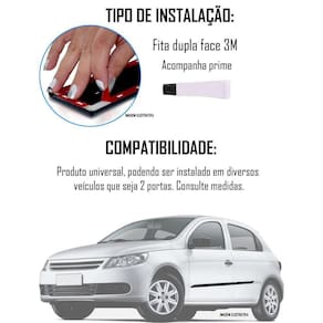 Descrição:O friso lateral é produzido em polipropileno pp de alta qualidade na cor preto, e segue os padrões mais exigentes de qualidade. Sua pintura é resistente e não desbota ou sai com o tempo. O friso lateral deixará seu carro muito mais bonito e atraente. Protege as portas contra pequenos acidentes e arranhões. Kit composto por 4 peças.Friso com ótima qualidade de acabamento e pintura.Produto universal para carros 2 portas.Medidas aproximadas dos frisos:- largura: 5 cm- porta dianteira: 106 cm- porta traseira: 40 cm1 ano de garantiaAlém de deixar seu carro com aspecto mais esportivo e moderno, o friso protege a lateral do seu veículo contra pequenos arranhões e amassosDisponível somente na cor:- preto.Possíveis carros compatíveis:- gol- palio- fox- strada- corsa- parati- uno- celta- ka- clio- astra- fiesta- peugeot 206- peugeot 207