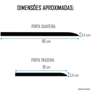 Descrição: O friso lateral é produzido em polipropileno pp de alta qualidade na cor preto, e segue os padrões mais exigentes de qualidade. Sua pintura é resistente e não desbota ou sai com o tempo. O friso lateral deixará seu carro muito mais bonito e atraente. Protege as portas contra pequenos acidentes e arranhões. Kit composto por 4 peças. Friso com ótima qualidade de acabamento e pintura. Produto universal para carros 4 portas. Medidas aproximadas dos frisos: - largura: 5 cm - porta dianteira: 89 cm - porta traseira: 61 cm 1 ano de Além de deixar seu carro com aspecto mais esportivo e moderno, o friso protege a lateral do seu veículo contra pequenos arranhões e amassos Disponível somente na cor: - preto. Possíveis carros compatíveis: - gol - voyage - up - polo - virtus - jetta - t-cross - taos - passat - polo - corolla - yaris - etios - onix - cruze - cobalt - corsa - celta - astra - agile - meriva - vectra - zafira - hb20 - creta - tucson - march - kicks - sentra - palio - punto - argo - uno - cronos - captur - sandero - logan - duster - renegade - compass - focus - ecosport - fiesta - novo ka Ean: 7896880714891