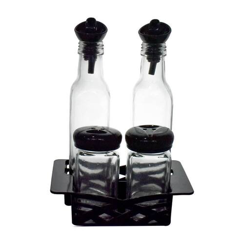 Jogo Galheteiro De Vidro E Porta Tempero 4Peças Casambiente