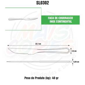 12 Facas de Churrasco 2x22,1 Espessura do cabo 2mm , peso por peca 0,04Kg.