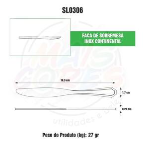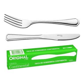 ficha técnica kit faqueiro: 12 garfos de sobremesa 1,9x16,6cm espessura do cabo 1,4mm, peso por peça 0,018kg. 12 facas de sobremesa 1,7x18,3cm espessura do cabo 2,0mm, peso por peça 0,027kg. Marca : line