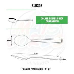 6 Colheres de Mesa 4,4x20cm Espessura do cabo 2mm, peso por peça 0,041Kg.