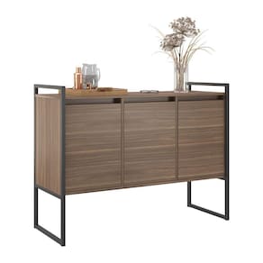 Com linhas retas e aspecto rústico, o design industrial é o destaque, trazendo autenticidade à decoração. Além da estética marcante, o buffet exibe objetos decorativos, enquanto o gaveteiro armazena documentos e pertences.