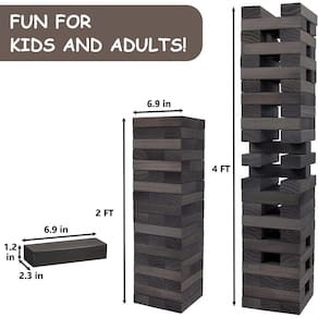 Juegoal 54 peças Giant Size Tumble Tower Blocks Game, Giant Wood Stacking Game, Grey