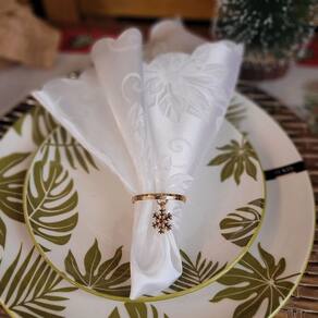 Eleve a decoração da sua ceia de Natal com este jogo de argolas e guardanapos, que une o brilho natalino à elegância de detalhes refinados. Uma escolha perfeita para momentos inesquecíveis!