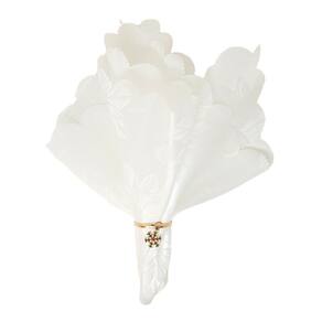 -04 Unidades Guardanapo Tecido Adamasc Branco Floral 43x43cm