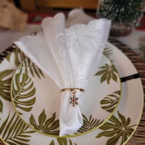Eleve a decoração da sua ceia de Natal com este jogo de argolas e guardanapos, que une o brilho natalino à elegância de detalhes refinados. Uma escolha perfeita para momentos inesquecíveis!