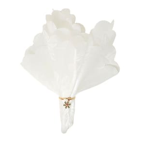 Encante seus convidados com este sofisticado jogo para mesa posta natalina. As argolas em metal rosê gold são adornadas com delicados pingentes de floco de neve em verde e vermelho, trazendo um charme festivo à sua decoração. O conjunto inclui 6 guardanapos em tecido adamascado floral branco, com acabamento impecável e medidas de 43x43cm, perfeitos para compor mesas elegantes e memoráveis.