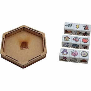 Contém : 1 Bandeja de Dados. 1 Livreto de Regras e Anotações 9 Dados de 21 mm personalizados.