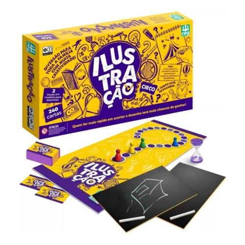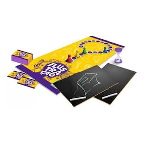 Contém: 01 tabuleiro, 01 ampulheta, 240 cartas, 04 peões, 01 caixa de giz e 02 lousas em madeira