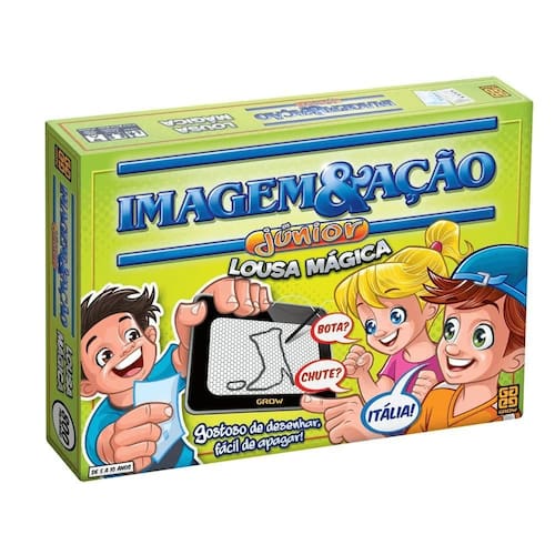 Jogo Imagem E Ação Junior Lousa Magica 2590 Grow O clássico jogo de desenho e adivinhação agora em versão para as crianças e com uma superlousa que apaga como se fosse mágica Cada jogador será o desenhista e, na sua vez, tentará passar à sua equipe uma palavra ou expressão. Para isso, você terá uma lousa e um pincel para desenhar, esboçar e rabiscar o que quiser. Os colegas de equipe têm o tempo da ampulheta para adivinhar. E você não precisa ser desenhista, o que vale é a sua criatividade A equipe só pode passar para a segunda palavra se acertar o desenho da primeira, e assim por diante. Ganha a equipe que matar primeiro às quatro palavras desenhadas. Você desenha e, na hora de apagar, apenas bate a lousa na palmas da mão e ela apaga como se fosse mágica Faixa etária a partir de 5 anos. Componentes: 1 lousa mágica, 200 cartas, 1 ampulheta, 8 fichas e 1 manual de instruções. Dimensões da embalagem: 27,1 x 37,6 x 5,5 cm. Ean: 07908010125900