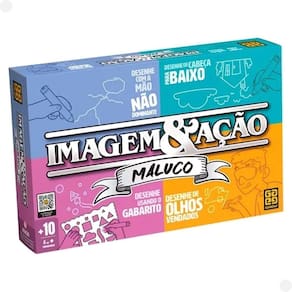 Prepare-se para a diversão No Imagem & Ação Maluco, cada jogador terá sua vez de brilhar como desenhista ou mestre das mímicas, só que antes... Deverá encarar um desafio sorteado no dadoÉ hora de soltar a imaginação, mas sem palavras ou gestos - só vale desenhar. Desafios como desenhar com a mão NÃO dominante, de olhos vendados, usando um gabarito, de cabeça para baixo, ou até mesmo tendo a sorte de seguir o jogando normalmente vão animar a competição