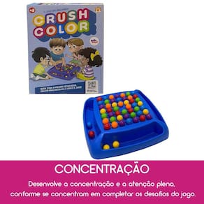 Jogo Infantil Desafio Crush Color Pensamento Logico Estrategia junte 2 ou mais bolinhas da mesma cor para pontuar. Você é capaz de identificar qual movimento vai te fazer coletar mais bolas Um jogo para ser jogado com a família e amigos Quem tiver a melhor estratégia, coleta mais bolinhas e vence o jogo Desenvolve a atenção, o pensamento lógico, capacidade de resolução de problemas e a coordenação motora
