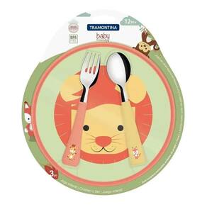 O Jogo Infantil da Tramontina são seguros e adequados para auxiliar os pequenos na alimentação. Prato e cabos em polipropileno e laminas em aço inox de ótima qualidade. São produtos com proteção antibacteriana incorporada no processo de injeção que dura por toda vida útil do produto. Além de que, podem ir a máquina de lavar louças. Prato pode ser levado ao micro-ondas. Conta com um prato, colher e garfo todos personalizados fofinhos para alegrar a hora mais importante do seu filho.