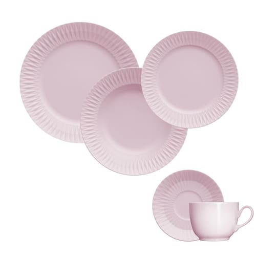 Jogo Jantar Chá 20 Peças Diamante Rosa Fractal Germer Porcelanas
