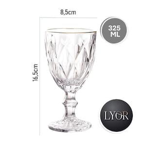 Taça de Vidro com Borda Dourada Diamond Cor Transparente para Água Lyor 325ml