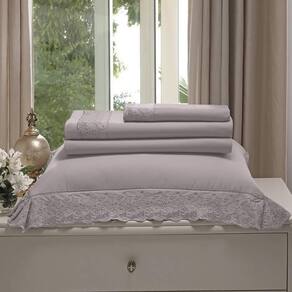 Jogo King 180 Fios Melody Renda Cinza 4 Peças 260X280M Jogo de Cama King Buettner 100% Algodão - 180 Fios Melody Renda Freire Cinza 4 Peças