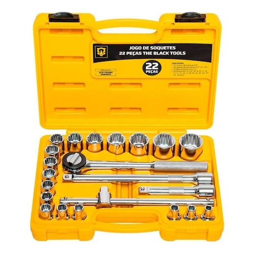 Jogo de soquetes estriado 22 pcs - bcs022 - the black tools