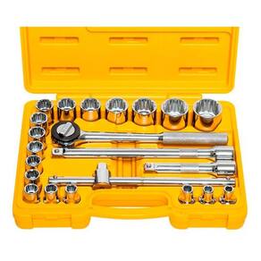 - 18 soquetes nas medidas: 8, 9, 10, 11, 12, 13, 14, 15, 16, 17, 18, 19, 21, 22, 24, 27, 30 e 32mm;