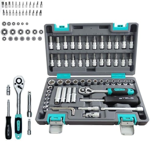 Produto: jogo kit soquete 57 peças 1/4 catraca chave crv allen stelsDescrição:O jogo de chave e cachimbos 1/4 da stels é composto por 57 peças de excelente qualidade em aço cromo vanádio, soquetes sextavados de 4 a 14mm, extensão, chave catraca, cabo t, todos com encaixe de 1/4. Melhor custo benefício do mercado. O kit é portátil, leve e de extrema qualidade, sem falar na maleta que é sensacionalCaracterísticas:- Encaixe 1/4;- Produtos de excelente qualidade, soquetes e chaves em aço cr-V;- Soquetes 1/4 com boca sextavada;- Catraca reversível 1/4 com cabo emborrachado;- Maleta resistente;- Peso bruto 1,4 kg;Itens inclusos:- 1 chave catraca reversível 1/4 com cabo emborrachado;- 1 barra extensora 2 polegadas;- 1 barra extensora 4 polegadas;- 1 junta universal de 1/4;- 1 chave manual encaixe quadrado de 1/4;- 4 chaves hexagonais tipo allen, medidas: 1.5, 2, 2.5, 3mm;- 4 soquetes sextavados longos, medidas: 6, 7, 8, 10;- 13 soquetes sextavados encaixe 1/4, medidas: 4, 4.5, 5, 5.5, 6, 7, 8, 9, 10, 11, 12, 13,14mm;- 06 soquetes torx fêmea, medidas: e4, e5, e6, e7, e8, e10;- 24 soquetes bits, sendo:- 3 bits phillips: ph1, ph2, ph3;- 3 bits pozidriv: pz1, pz2, pz3;- 3 bits fenda: sl4, sl5.5, sl6.5;- 7 bits tipo allen: h3, h4, h5, h6, h8;- 8 bits torx sem furo guia : t8, t10, t15, t20, t25, t27, t30, t40;- 1 maleta com design inovador ultra resistente;