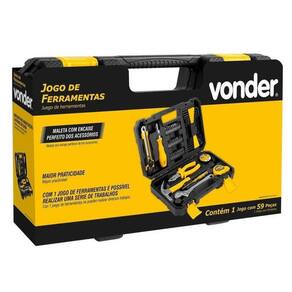Distribuído por casa do puxadorJogo kit ferramentas 59 peças allen philips hexalobular com maleta - vonderConteúdo da embalagem:1 jogo de ferramentas, composto por 59 peças, sendo:8 chaves hexalobular t9, t10, t15, t20, t25, t27, t30, t40 ,8 chaves allen 1,5 mm, 2,0 mm, 2,5 mm, 3,0 mm, 4,0 mm, 5,0 mm, 5,5 mm, 6,0 mm ,3 porta bits, 30 bits de 25,0 mm, sendo: fenda 3,5 mm 2x , 4,0 mm 2x , 5,5 mm, 6,5 mm, 8,0 mm , phillips ph0 2x , ph1 2x , ph2 2x , ph3 , torx t10, t15, t20, t25, t27, t30, t40 , pozidrive pz1, pz2, pz3 , hexagonal 2,0 mm, 3,0 mm, 4,0 mm, 5,0 mm, 6,0 mm, 7,0 mm ,1 chave teste,1 estilete comprimento de 6.1/2 e largura da lâmina de 18,0 mm,1 cabo adaptador para bits com catraca encaixe 1/4,1 alicate universal 6 com isolação até 1.000 v,1 fita isolante 5,0 m,1 trena de 3,0 m,1 chave ajustável 8,1 capa de borracha para cabeça do martelo,1 martelo 20,0 mm com cabo em fibra de vidro. Acompanha1 maleta plástica.Proporciona maior praticidade, pois com apenas 1 jogo de ferramentas é possível realizar uma série de trabalhos.Acompanha maleta com encaixe perfeito dos acessórios, conferindo organização, praticidade e maior vida útil às ferramentas.Indicado para manutenções e reparos em geral.Garantia legal: 90 diasMarca: vonderKit ferramentaJogo de chavesKit soqueteKit chave de bocaKit chave combinadaJogo de ferramentas completoJogo soqueteKit de chaveLoja do mecanicoChave de bocaKit de ferramentasCasa do mecanicoLoja mecanicoSataMaleta de ferramentasKit ferramentasSoqueteChave canhãoJogo de chave combinadaChave estrela