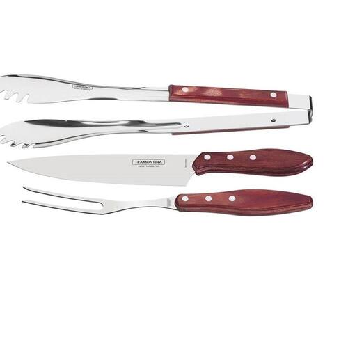 Jogo Para Churrasco Inox 3 Pç Polywood 21198/761 Tramontina conteúdo 1 - 21169/040 - Pegador para carne (37 cm) 1 - 21189/048 - Faca para carne 8 1 - 21192/040 - Garfo trinchante Descrição: Respeito também se conquista na ponta da faca. Mas, calma. Estamos falando da linha de facas e garfos trinchantes especiais para churrasco. A Tramontina tem um modelo para cada etapa do preparo: da limpeza dos cortes até a hora de servir a carne já churrasqueada. Todas com o corte perfeito que o seu churrasco merece. Lâminas de aço inox. Cabos de madeira tratada Polywood. Rebites de alumínio. Uso Seguro: Antes da primeira utilização, lave bem as peças e seque-as. Tenha cuidado ao manusear produtos cortantes e perfurantes e mantenha-os fora do alcance de crianças. Para maior durabilidade dos produtos, recomenda-se secar bem antes de guardar, mesmo após lavagem em máquina. Para descarte dos produtos e embalagens siga as orientações de reciclagem vigentes. Complemento: EAN13: 7891112174986 DUN14: 17891112174983 NCM: 8215.20.00 Peso Líquido: 0,5200 kg. Peso Bruto: 0,6800 kg. Metragem: 0,004437 m Dimensões Embalagem (Compr. X Larg. X Alt.): 60x 170x 435 mm. Dimensões Produto (Compr. X Larg. X Alt.): 60x 170x 435 mm.