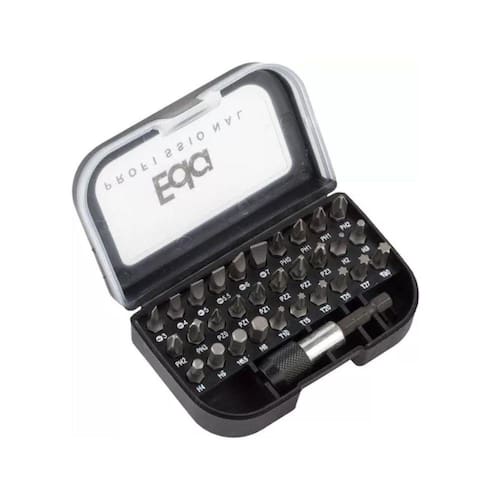 6 fendas: 3, 4, 5, 5.5, 6, 7 6 phillips: ph0, ph1, ph1, ph2, ph2, ph3 6 pozi: pz0, pz1, pz1, pz2, pz2, pz3 6 allen: h2, h3, h4, h5, h5.5, h6. 6 torx: t10, t15, t20, t25, t27, t30. 1 engate rápido.
