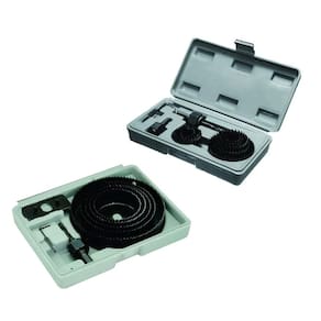 Jogo de serra copo para madeira em aço carbono com 1" 25mm de altura. Jogo com 8 peças, contem 8 lâminas nas medidas: 19mm, 22mm, 29mm, 32mm, 38mm, 44mm, 51mm e 64mm de diâmetro, acompanha chave hexagonal em aço carbono para fixação de broca piloto, adaptador de 3/8" 9,5mm com broca piloto em aço carbono e adaptador de 1/4" 6,35mm . Indicado para perfurar chapas de madeira, compensados e placas de gesso. Para uso em furadeiras. Ref.: 13005168 Jogo de serra copo para madeira em aço carbono com 1" 25mm de altura. Jogo com 8 peças, contem 5 lâminas nas medidas: 64mm, 76mm, 89mm, 102mm e 127mm de diâmetro. Acompanha chave hexagonal em aço carbono para fixação de broca piloto, adaptador de 3/8" 9,5mm com broca piloto em aço carbono e uma placa de fixação. Indicado para perfurar chapas de madeira, compensados e placas de gesso. Ref.: 13005151 Marca.: Starfer