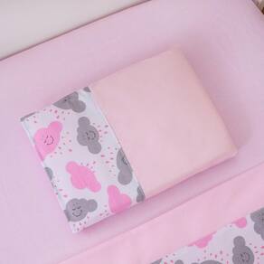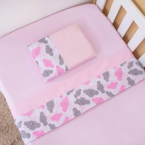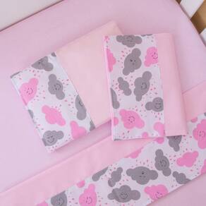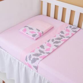 Jogo Lençol 3 Peças 100% Algodão Berço Nuvem Rosa