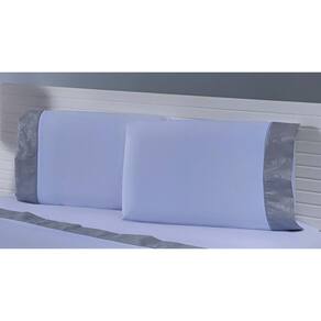 Jogo lençol 4 peças cama viúva 1,88m x 1,28m x 30alt percal 200 fios branco barrado jacquard cinza