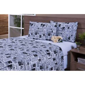 Jogo lençol 4 peças cama viúva 1,88m x 1,28m x 30alt percal 180 fios estampa de jornal Jogo de lençol 4 peças cama 2,03 x 1,20 x 0,30 cama viúva 100% algodão 180 fios 01 lençol de cima 2,60m x 1,90m estampado de jornal01 lençol de baixo com elástico ao redor de todo o lençol para melhor fixação no colchão não fica saindo da cama para colchão 2,03 x 1,20 x 0,30 cor lisa branco02 fronhas 70cm x 50cm estampado de jornalComposição: tecido 100% algodão 180fios Marca: Miguel Enxovais