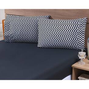 Jogo lençol 4 peças cama viúva 1,88mx1,28mx25cm 100% algodão 180 fios chevron preto Thais enxovais Jogo de lençol 4 peças cama 1,88 x 1,28 x 0,25 cama viúva 100% algodão 180 fios com ponto palito