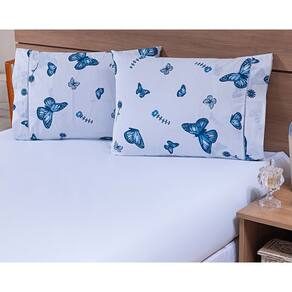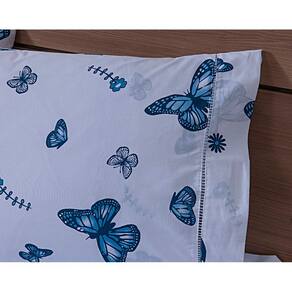 Jogo Lençol 4 Peças Cama Viúva 1,88mx1,28mx30cm 100% Algodão 180 Fios Borboletas Azul