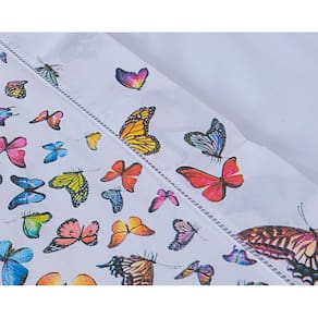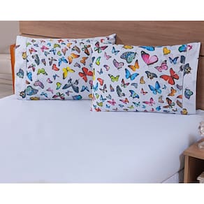 Jogo Lençol 4 Peças Cama Viúva 1,88mx1,28mx30cm 100% Algodão 180 Fios Borboletas Coloridas - Única