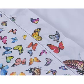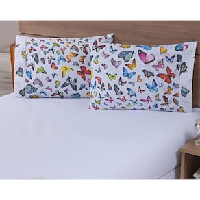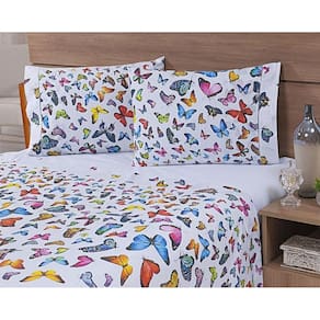Jogo lençol 4 peças cama viúva 2,03mx1,20mx35cm 100% algodão 180 fios ponto palito borboletas coloridas Thais enxovais Jogo de lençol 4 peças cama 2,03x 1,20 x 0,35 cama viúva 100% algodão 180 fios com ponto palito