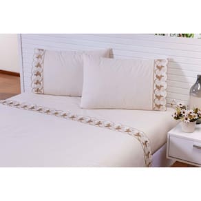 Jogo Lençol 4 Peças Cama Viúva Bordado Palha Com Caqui